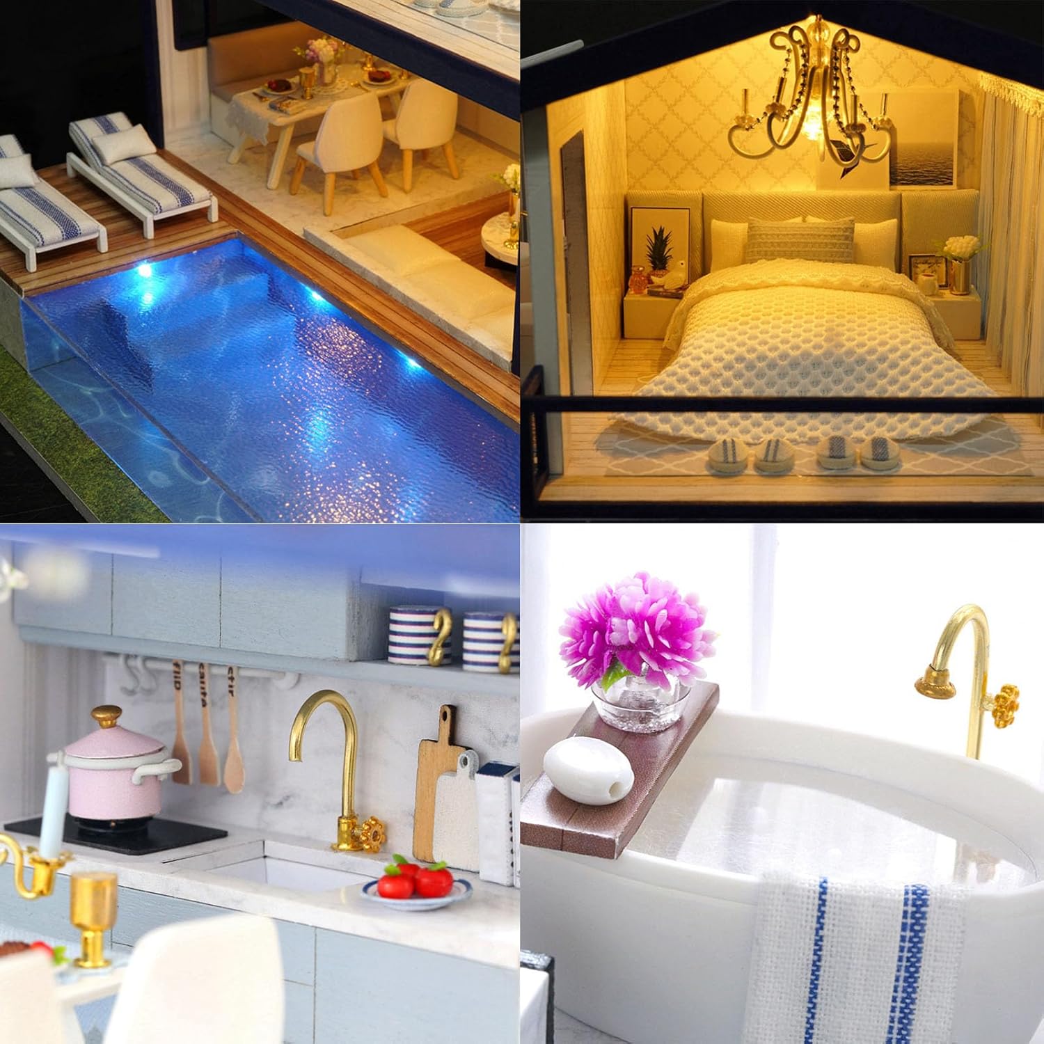 DIY Miniature House Kit, Wooden Assembling House Kit, Tiny House with Furniture LED (Time Apartment)