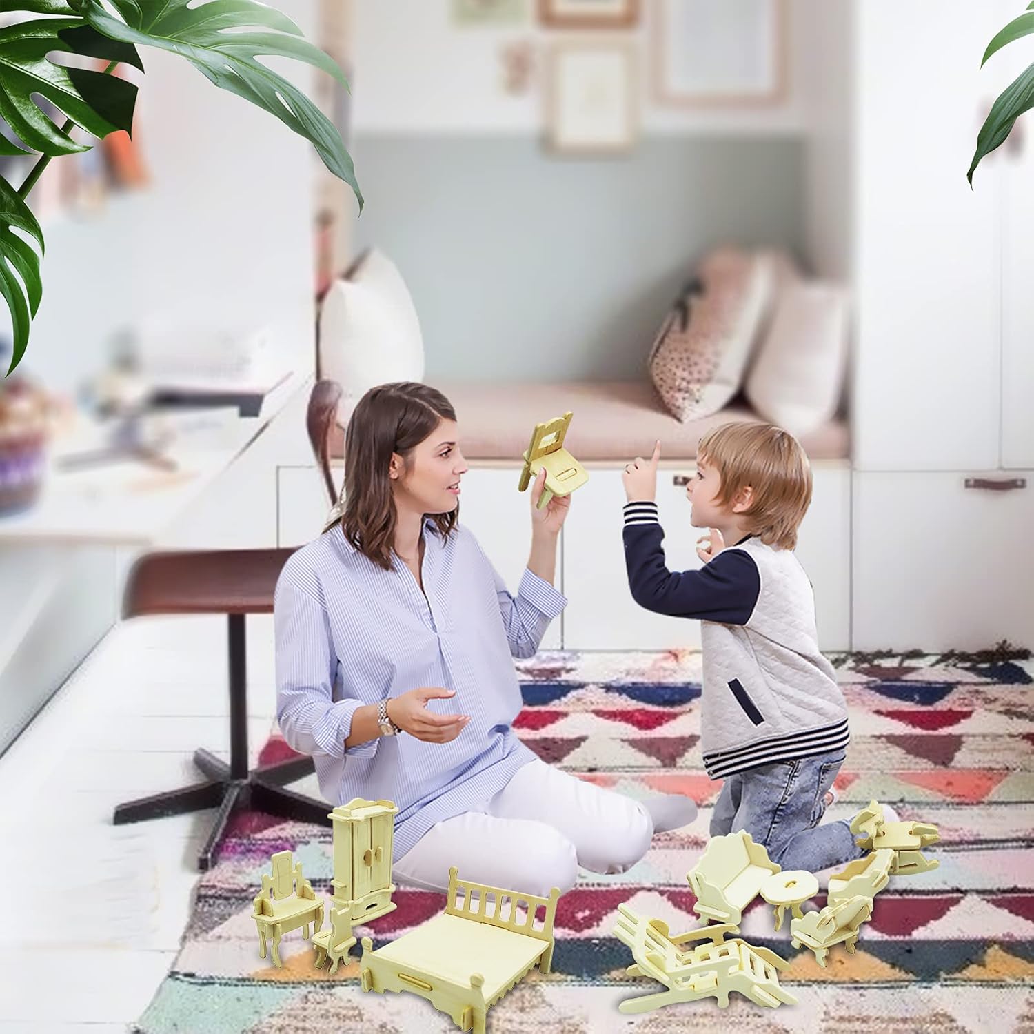 Build and decorate your miniature spaces with this 34-piece wooden dollhouse furniture set. Featuring laser-cut pieces that assemble like a 3D puzzle, this kit adds charming detail to dollhouses, mini rooms, and craft projects fun for kids, teens, and adults.